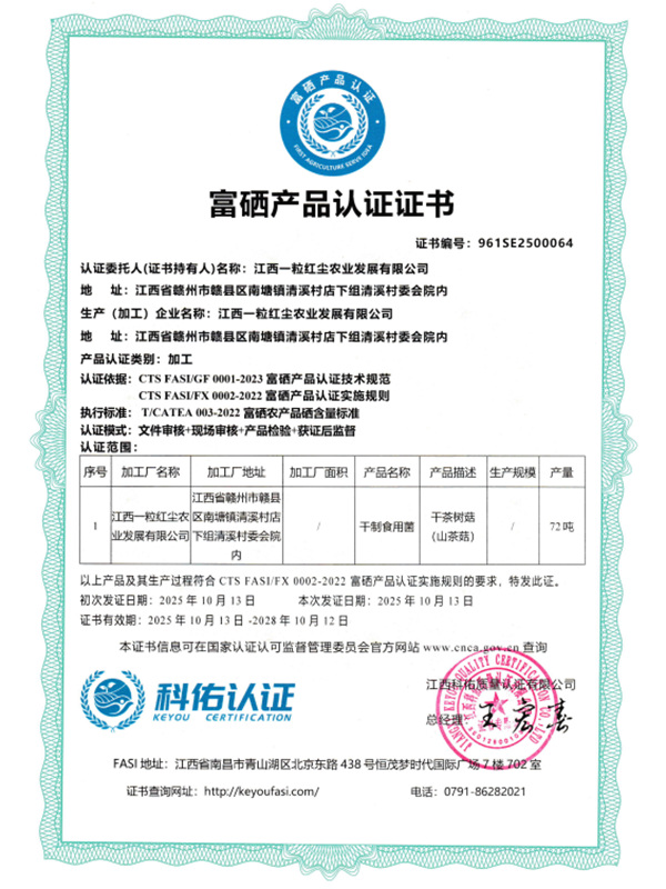 江西一粒紅塵農業發展有限公司是一家總部位于江西省贛縣的現代農業多元型企業,專注于食用菌的研發、種植、深加工、貿易研教培農文旅等全產業鏈發展。公司秉承“健康、綠色共享共贏”的核心價值觀,致力于引領鄉村振興之路,旨在成為......